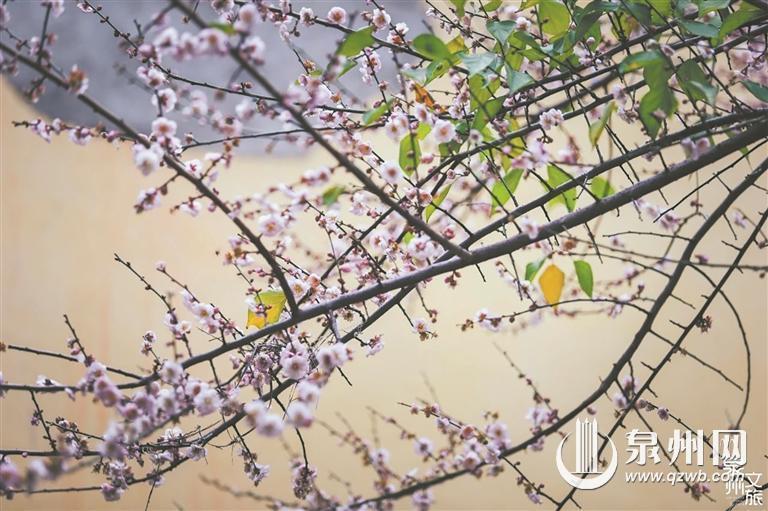 开元寺仁寿塔前,春樱如约而至。十余株樱花树在绚烂的阳光下缓缓舒展,矜持又妩媚,与古寺的拙朴沧桑互补。古寺红墙下微风吹拂,花瓣如雪,轻轻飘落的樱花盈盈弱弱,美得像幅画卷,迎来了一群群爱樱之人共赴花宴。崇福寺西南角僧舍前的那片樱花林,开得煞是热闹。枝头红花绽放,树下落英缤纷。那满地碎红,不知是被古地的松风吹落,还是被挥舞的杖影扫落。