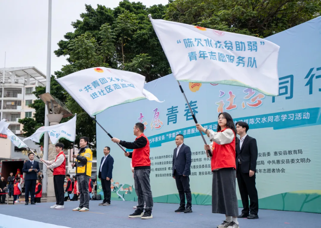 惠安团县委、县教育局、县青年志愿者协会开展“学雷锋精神·绘志愿青春”2025年惠安县青年志愿服务主题活动暨向身边榜样陈欠水同志学习活动启动仪式。主题活动上,发布了星级青年志愿者争创提升行动,通过朗诵、事迹宣讲、宣誓等方式引导惠安青年传承弘扬志愿精神。设青春志愿集市及红领巾跳蚤市场提供便民志愿服务,并组织“陈欠水扶贫助弱”青年志愿服务队到困难户家中开展帮扶、卫生清洁活动。