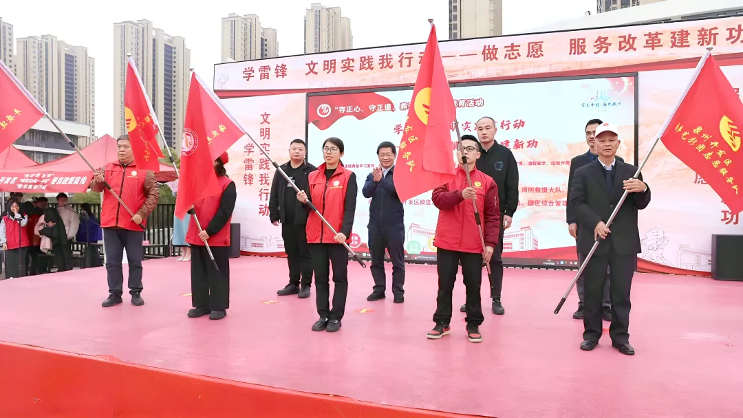 活动为“海丝先锋党员志愿突击队”“物业服务志愿服务队”“平安建设志愿服务队”、“靓猫义剪”志愿服务队、园声艺彩团志愿服务队等5支区内新成立的特色志愿服务队授旗;分别为获评三星、四星、五星的志愿者颁发证书;五星志愿者上台分享志愿服务心得,激励在场志愿者积极践行文明实践。