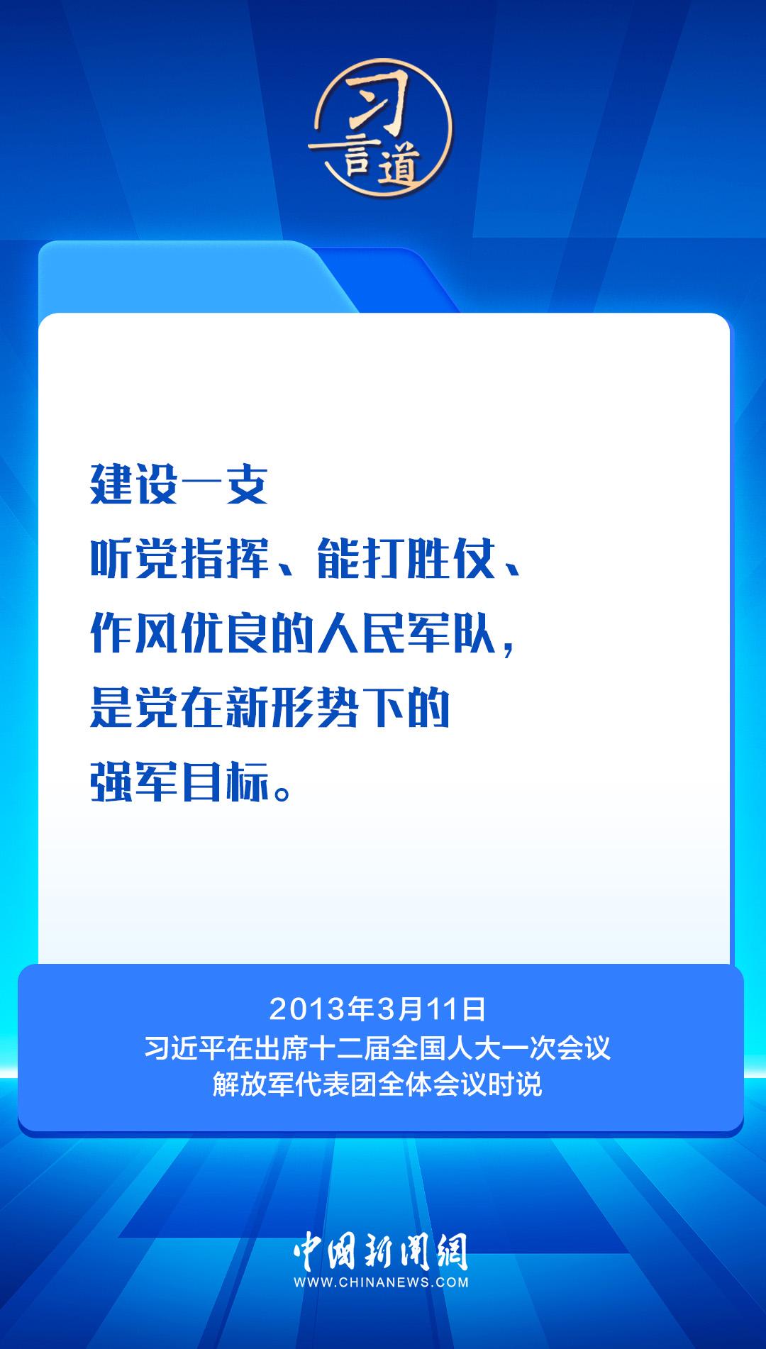 2013年到2025年的全国两会,中共中央总书记、国家主席、中央军委主席习近平连续13年到解放军代表团、解放军和武警部队代表团,与全军官兵代表们共商国是,谋划国防和军队现代化建设。这些话语掷地有声,为强军建设指引奋进方向——