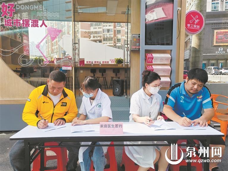 签约家庭医生,“友好社区”为外卖小哥的健康保驾护航。(东美社区 供图)