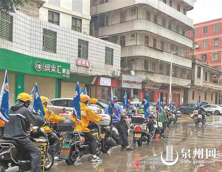 外卖小哥组成社区志愿服务队(泉州晚报资料图片)