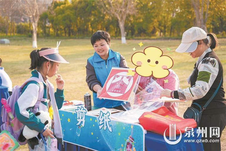 活动还巧妙融合泉州非遗文化,为孤独症儿童开启沉浸式体验之旅。非遗宣讲区通过互动问答加深了孩子们对文化的理解,“非遗传声筒”环节更是发掘出部分儿童的音乐天赋,为后续艺术培训埋下种子。火鼎公婆、闽南语歌曲等表演赢得阵阵掌声;花灯、剪纸、漆线雕等非遗摊位前,孩子们在传承人手把手指导下专注创作。在活动尾声,孩子们亲手制作的非遗作品在海丝公园集中展出(展期至4月5日),每一件作品都标注创作者姓名,见证他们的成长印记。