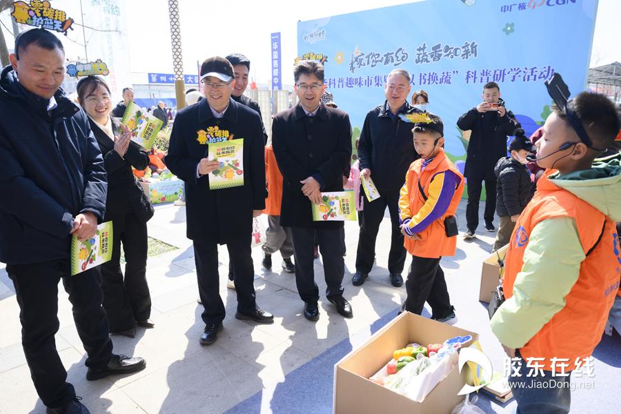 与以往不同,本次活动场地设在招远大集,不但人气飙升,也更贴近绿色健康生活理念。同时,本次活动除设置了主题推介、核能科普社区欢唱会、核能科普社区游园会等环节之外,首创“沉浸式市集科普”新模式,“核你有约 蔬香知新”——核能科普趣味市集暨“以书换蔬”科普研学活动带来全新体验。现场,核能科普“小志愿者”化身“市集售货员”,通过“核能科普”大闯关的形式获得“以书换蔬”的交易名额,在知识的海洋里解锁核能科普趣味市集新玩法。此外,鲁东大学美育教学中心志愿服务队再次参与,持续为烟台核能科普贡献青春力量。