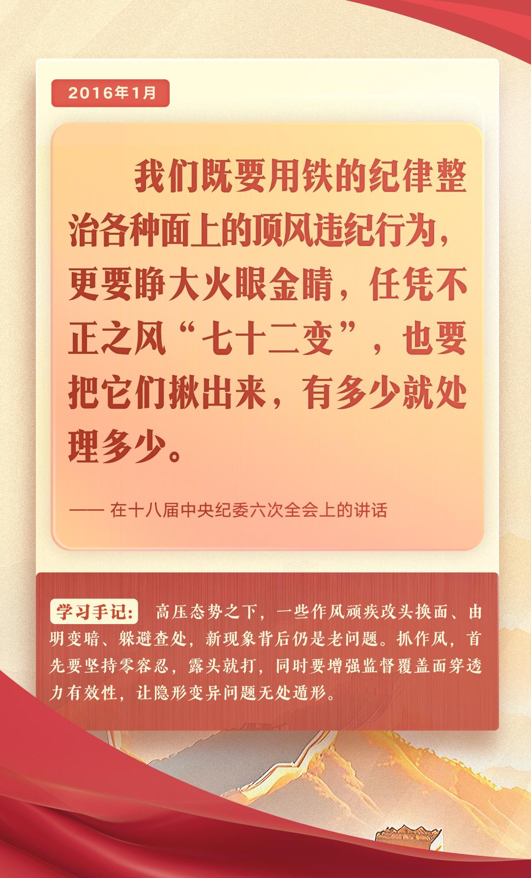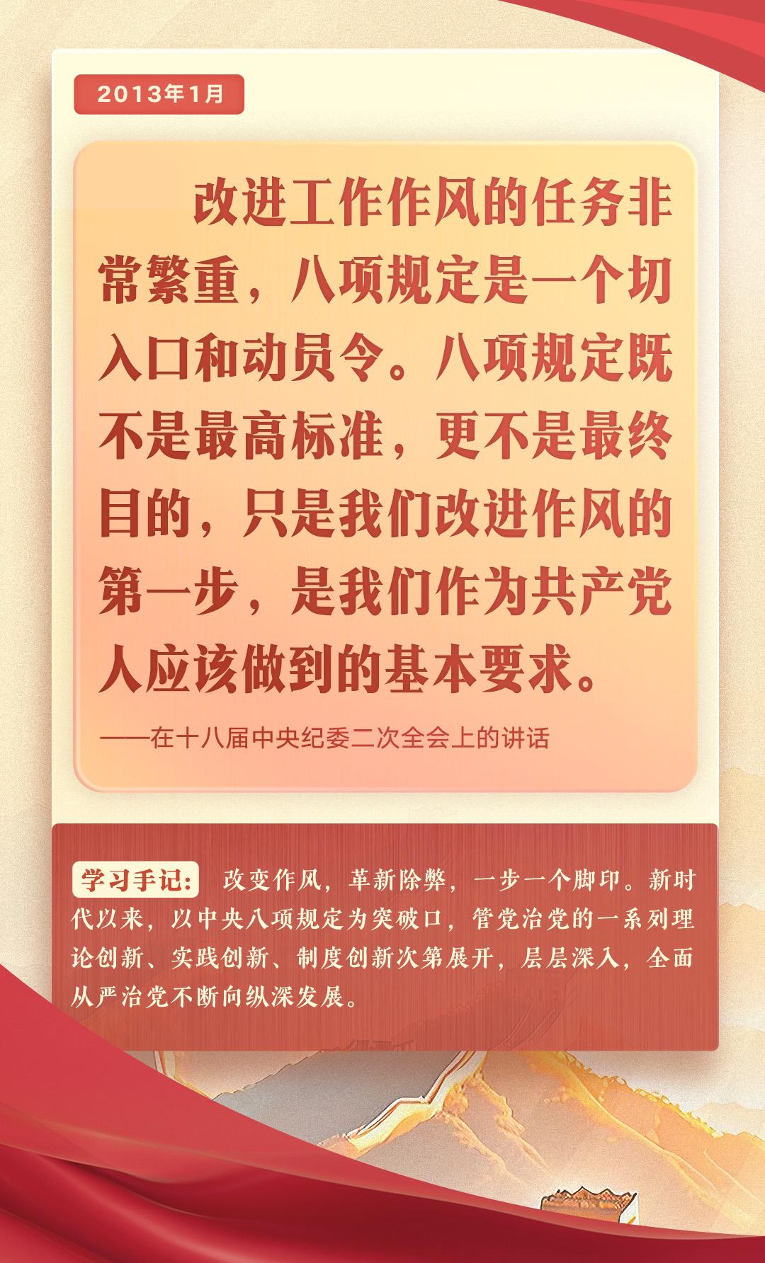 党的作风就是党的形象。中央八项规定是改进作风的切入口和动员令,是长期有效的铁规矩、硬杠杠。