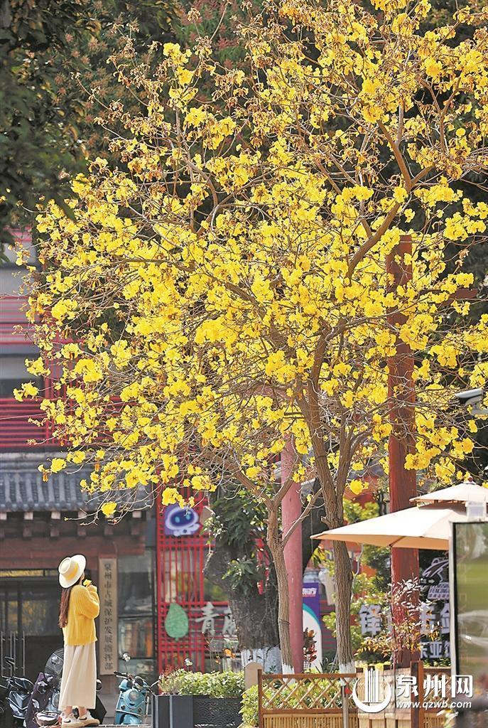 气温回升,正是春游踏青的好时光。东亚之窗文创园的黄花风铃木颜值爆棚,宛如身披“黄金甲”,吸引了不少市民前来打卡。(王柏峰/摄)