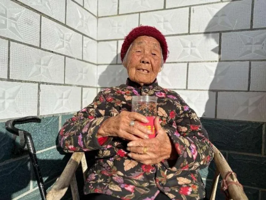 见到曹华亭时,她正坐在藤椅上靠墙晒太阳。老人听力几近丧失,但当我们提到弟弟曹炳忠的名字时,她浑浊的眼睛瞬间亮了起来。