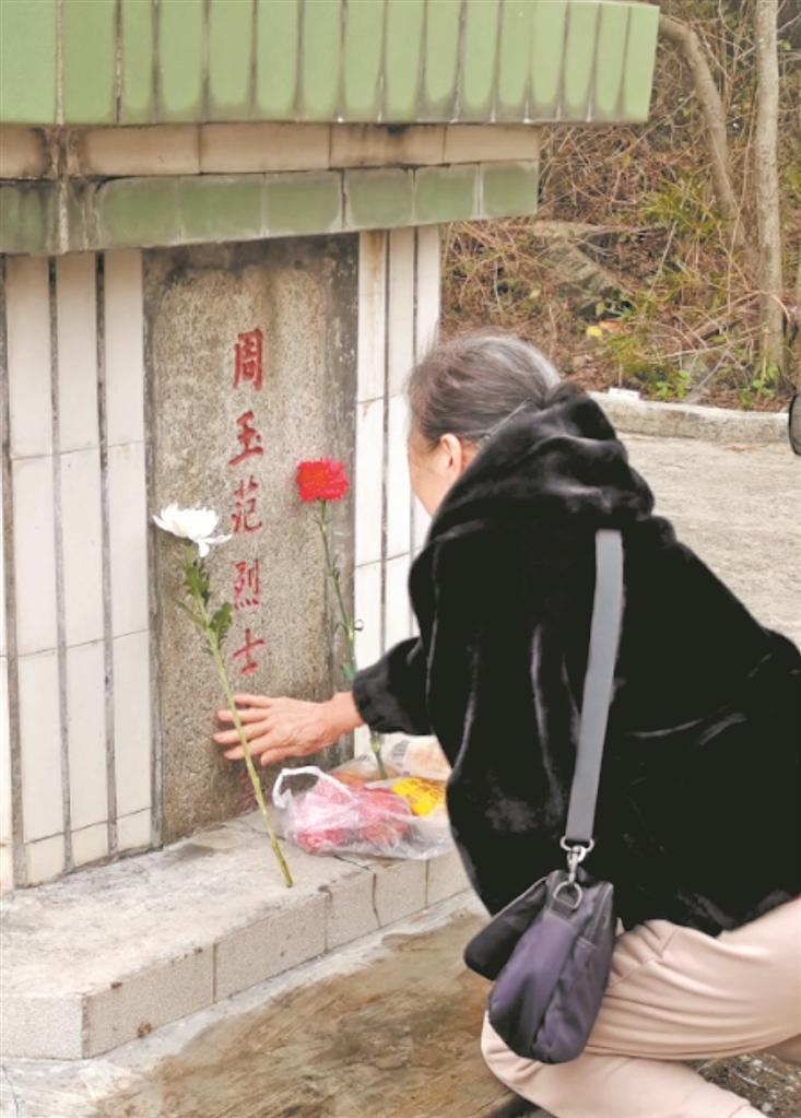 2021年,年过六旬的周凤香得知父亲在泉州的准确安葬地,便踏上祭拜之旅,这也是父亲牺牲后,她第一次和父亲“见面”。“第一次触摸到父亲墓碑时,我把沂蒙山的红土和母亲做的煎饼供在墓前。”周凤香回忆。