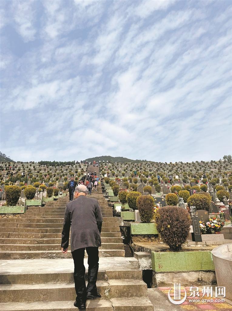 来自晋江青阳的李先生一家早早来到此处,为离世的父亲祭扫。李先生的女儿穿着一身素净的连衣裙,手捧一束菊花,眼神纯净而认真。她问道:“爸爸,爷爷能看到我们带来的花吗?”李先生摸了摸她的头,轻声说:“能的,爷爷一直都在我们身边,看着我们呢。”说话间,他的目光落在墓碑上父亲的照片上,那慈祥的面容,让他的眼眶瞬间湿润。