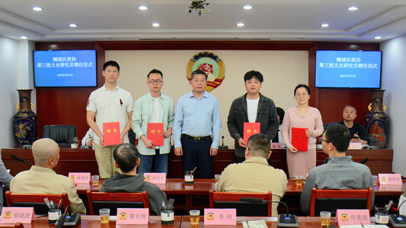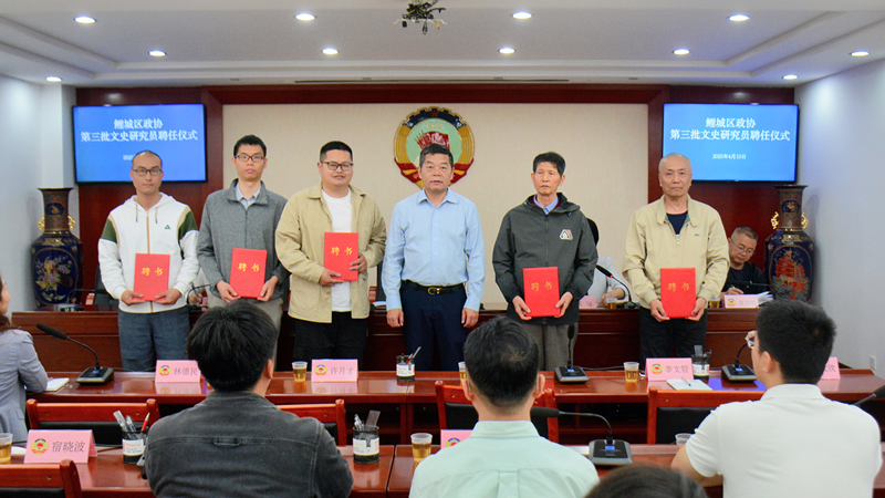 4月10日上午,鲤城区政协举行第三批政协文史研究员聘任仪式。区政协党组书记、主席苏培聪出席仪式并为新聘的10名文史研究员颁发聘书。区政协副主席郭瑜主持仪式。