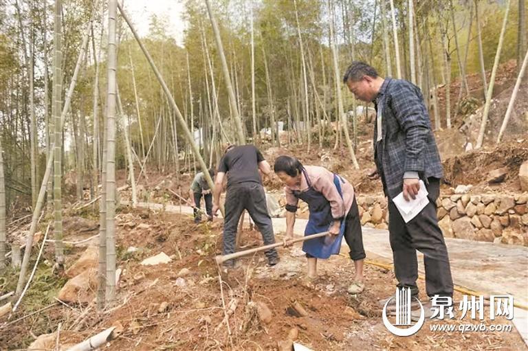 泉州网4月12日讯(融媒体记者陈小芬 通讯员吴有森 邓志鹏 文/图)近日,在德化县雷峰镇李溪村的“千亩竹海”生态区核心地带,一座融合中医药文化与生态旅游的百草园研学基地正加速成型。记者现场看到,工人们正有序铺设青石板步道,350余种中草药新苗沿着蜿蜒山径次第延伸,与苍翠竹林相映成趣,勾勒出一幅“林间本草图”。