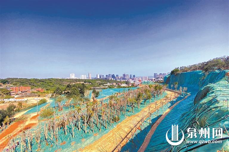 泉州网4月18日讯(融媒体记者许钹钹 通讯员郭晨霞 刘正林 文/图)随着最后一批智能喷灌设备调试完成,由泉州城建集团权属企业东海投资公司投建的泉州市观音山废弃矿坑生态修复改建工程完工,较原计划提前2个月。这片曾因采石留下的16万平方米“山体伤疤”,历经2年系统修复,如今已蜕变为绿意盎然的生态屏障,为东海片区城市更新改造再添“绿色动能”。