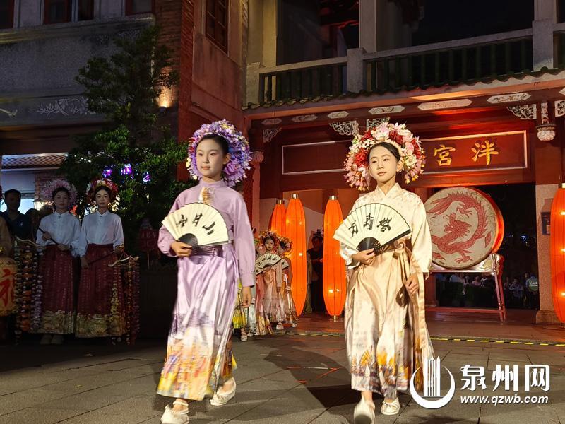 泉州网4月19日讯(融媒体记者魏晓芳 实习生吕凯文 文/图 张凌波/视频)海风千万里,花开四季簪。昨晚,“蟳埔女装”城市快闪秀在中心市区中山路精彩上演,60余名模特们身着绚丽多彩的簪花服饰集中亮相,以钟楼为始,沿着泮宫方向巡游,以“簪花+时尚”的创新表达,为泉州打造“时尚之都”写下新的注脚。