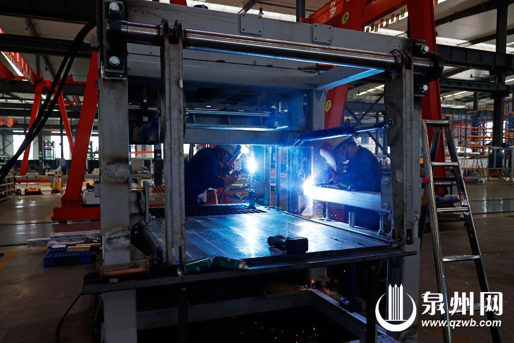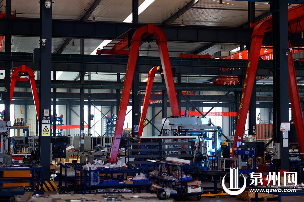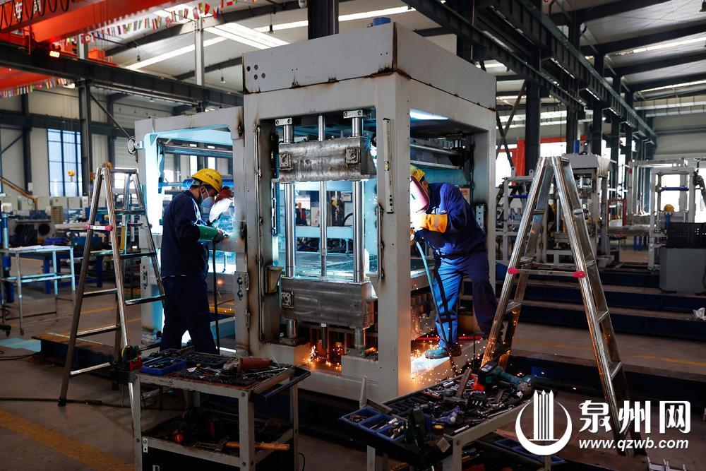 作为国家级制造业单项冠军示范企业与国家绿色工厂,泉州泉工机械依托技术创新与智能化生产,充分利用建筑垃圾、尾矿和淤泥等固废原材料制砖,实现固废再次利用,深受欧洲、东南亚和非洲市场欢迎,今年首季度订单量同比增长30%。图为连日来,在泉工机械生产车间内一派热火朝天的生产景象。(融媒体记者陈晓东 摄)