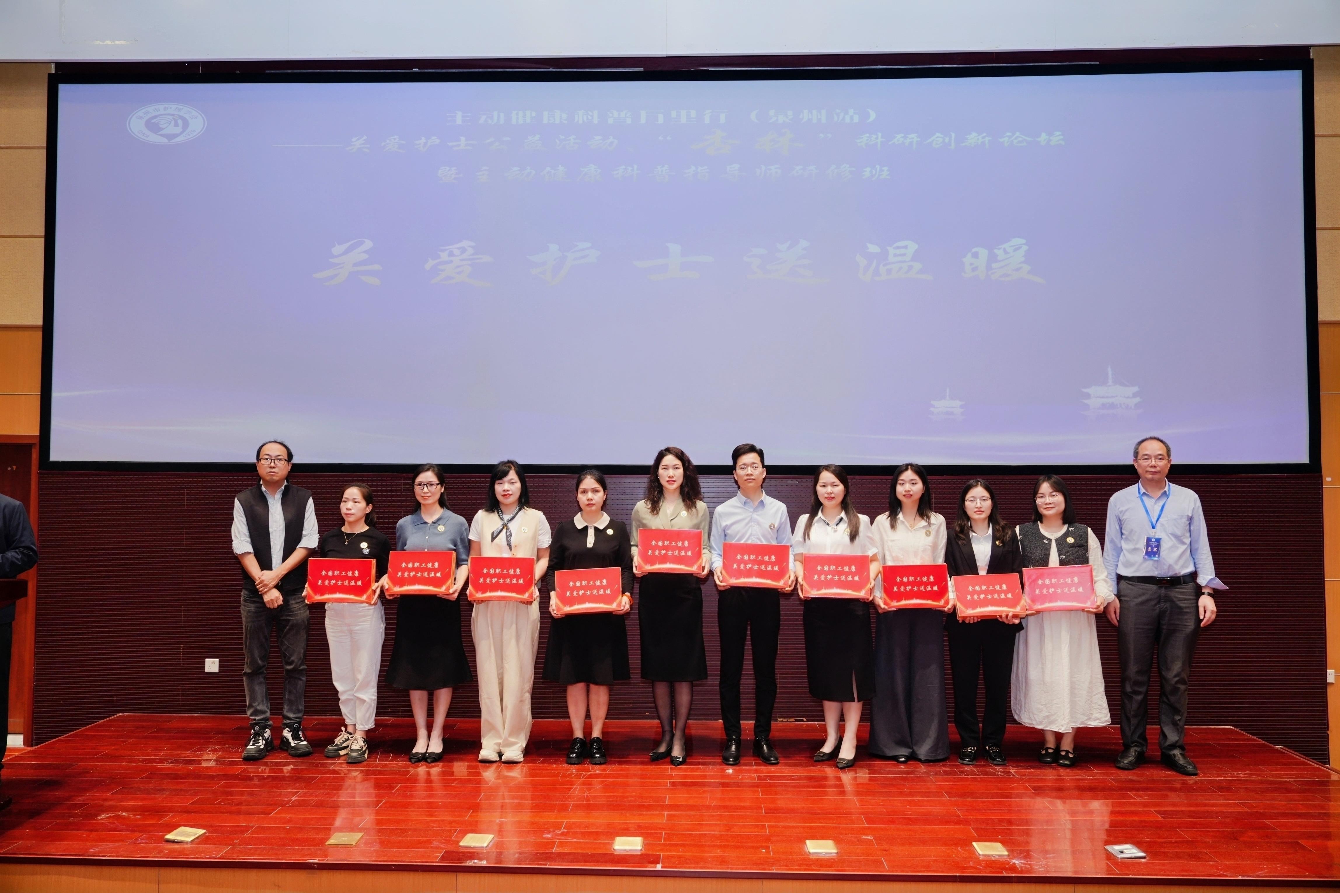 泉州网4月19日讯(融媒体记者 苏凯芳 苏维斯)4月18日,由国家卫健委职业安全卫生研究中心、全国职工健康促进工程办公室、全国医药技术市场协会联合泉州市护理学会共同主办的主动健康科普万里行(泉州站)——关爱护士公益活动、"杏林"科研创新论坛暨主动健康科普指导师研修班在泉州市第一医院举行。活动旨在关爱护士群体,推动健康科普,并探索数智护理的新未来。