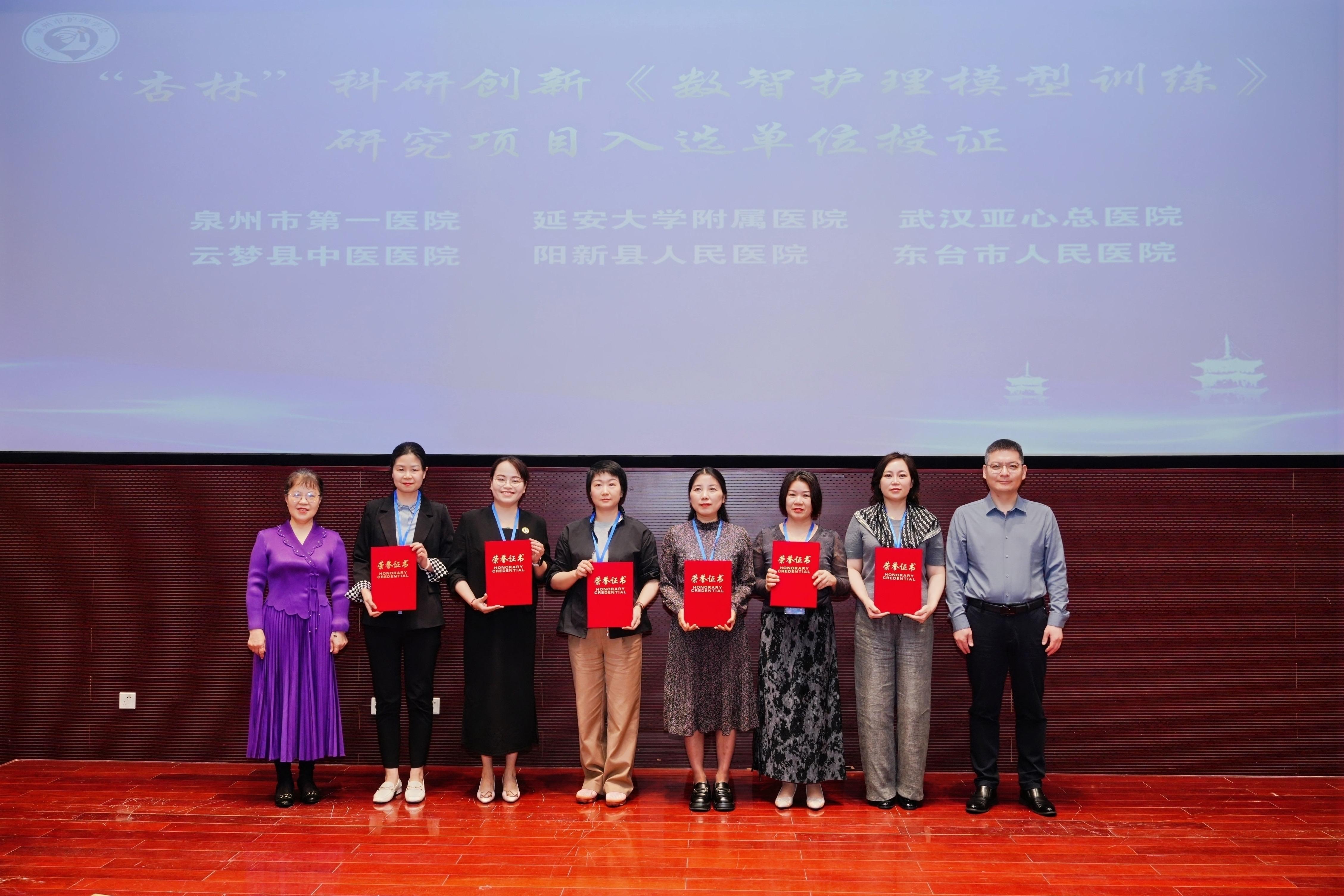 “杏林”科研创新《数智护理模型训练》研究项目的启动成为活动的一大亮点。该项目聚焦数智化护理发展前沿,致力于推动科研成果向临床应用的转化,为护理事业注入新活力,为健康泉州建设提供有力支撑。泉州市第一医院等六家单位凭借出色表现获得项目入选资格,并接受了现场授牌,标志着数智护理迈入实践新阶段。