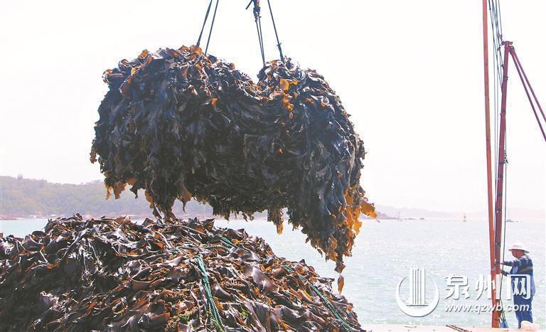 据了解,泉港海域水深岸阔,风浪不大,光照充足,是适宜海带养殖的优质“海上田园”。这里出产的海带叶片肥厚、口感筋道,深受消费者喜爱。今年后龙镇海带养殖规模达到6000余亩,采收将持续两个月,如今海带养殖已成为当地养殖户致富增收的重要产业之一。