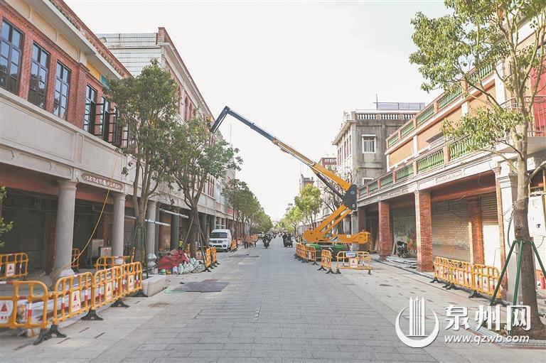 当前,鲤城区中山南路改造提升工作正紧锣密鼓推进中。近日,笔者从相关部门获悉,中山南路外立面修缮、主路面地铺及树木栽种已基本完成,目前正在进行骑楼桥架铺设、吊顶安装、地面铺砖及廊柱砌砖等方面施工。