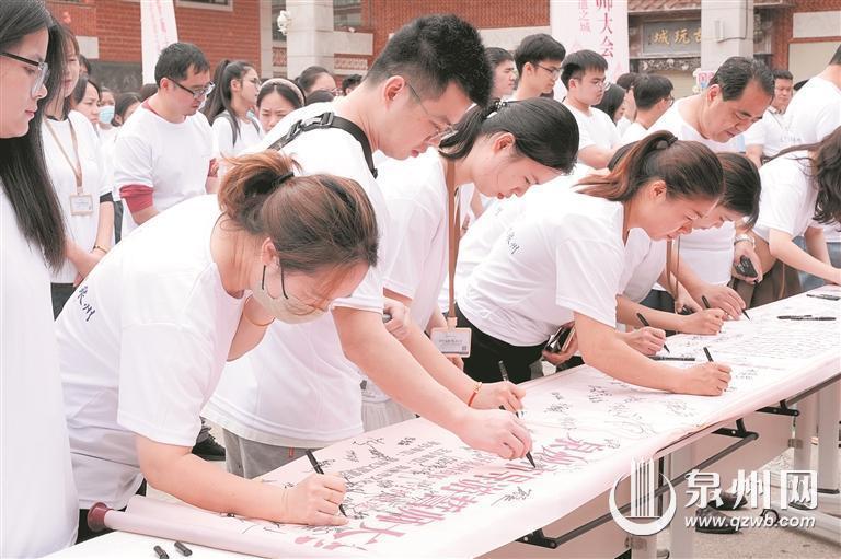 活动现场,12家旅行社代表分批签署《旅行社行业规范经营承诺书》,承诺依法经营、诚信服务。随后,全体导游依次签署《导游诚信自律承诺书》,并移交泉州市文化市场综合执法支队,接受社会监督。随后,全体导游右手握拳,庄严宣誓。铿锵誓言彰显了泉州导游队伍的责任担当,现场气氛热烈激昂。