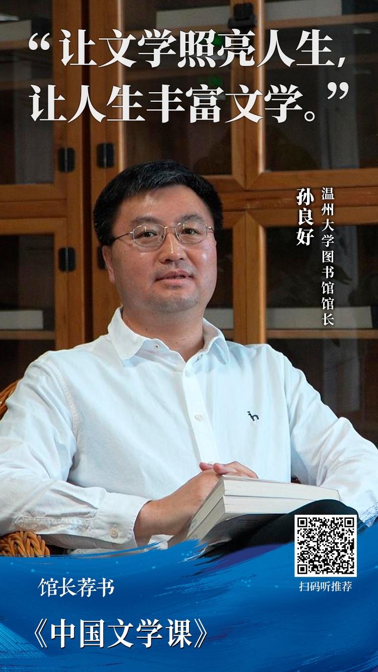 为充分发挥温州高校阅读联盟平台的纽带作用,营造高校师生人人参与、共建共享的良好阅读生态氛围,丰富高校师生精神文化生活,助力“书香社会、阅读温州”建设,即日起,温州高校阅读联盟正式启动“书香青春·领读未来”主题活动。活动期间,各在温高校书记、校长、图书馆馆长等将通过镜头推荐书籍,分享阅读感悟,启迪师生心智。“书香青春·领读未来”主题活动之“馆长荐书”第三期,温州大学图书馆馆长孙良好带来《中国文学课》,一起让文学照亮你的人生。