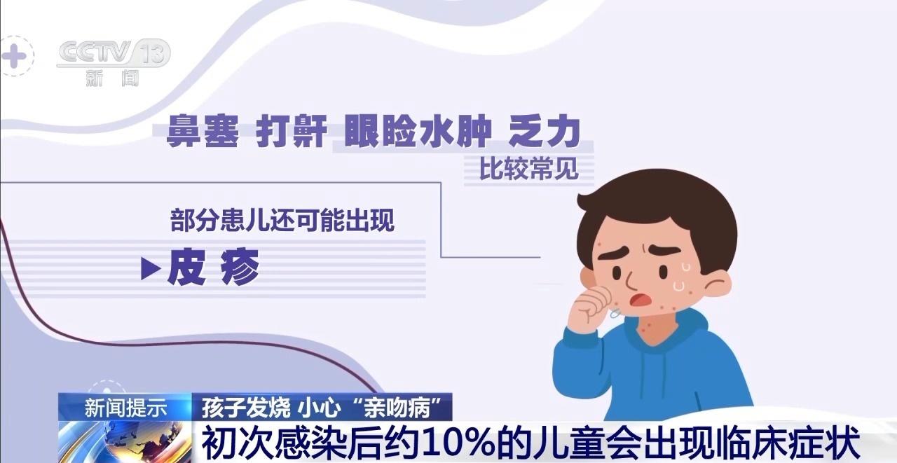 郑州大学第三附属医院儿内科副主任 赵会茹:临床特征主要是一个三联征:发热,咽峡炎和淋巴结肿大,人群普遍易感,但主要是儿童和青少年高发。主要的发病年龄是4~6岁,因为这个时候,可能有一些长辈对患儿喜爱,会情不自禁亲吻孩子,所以这个年龄段,发病率是比较高的。