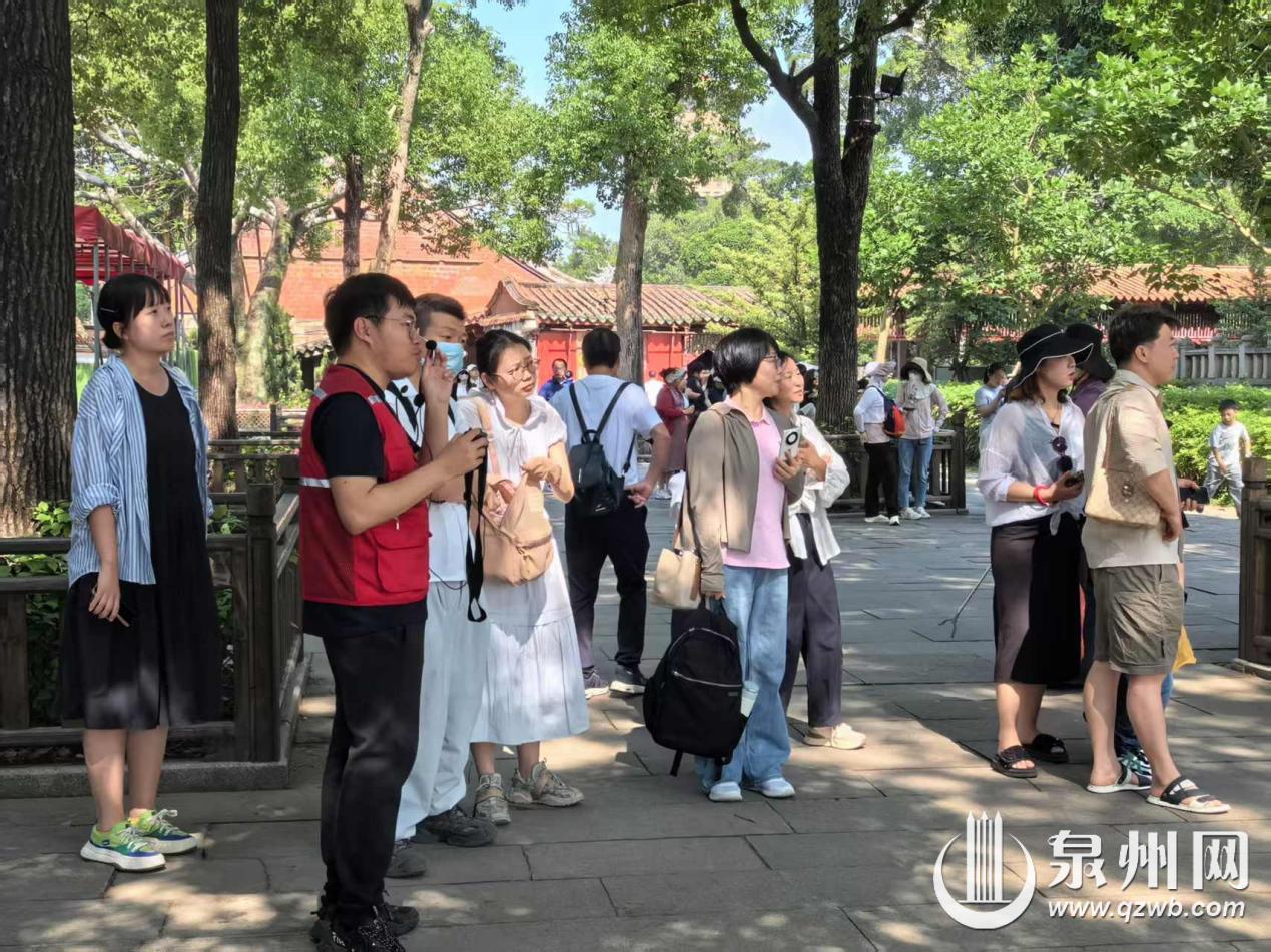 “五一”期间,海丝泉州推荐官泉州师范学院文旅工作室也加入公益讲解队伍,泉州市“刺桐红”党员文旅志愿服务队配合做好文明引导工作。伴随着公益讲解志愿者的不断扩大,世遗泉州的“声量”也在不断提高。