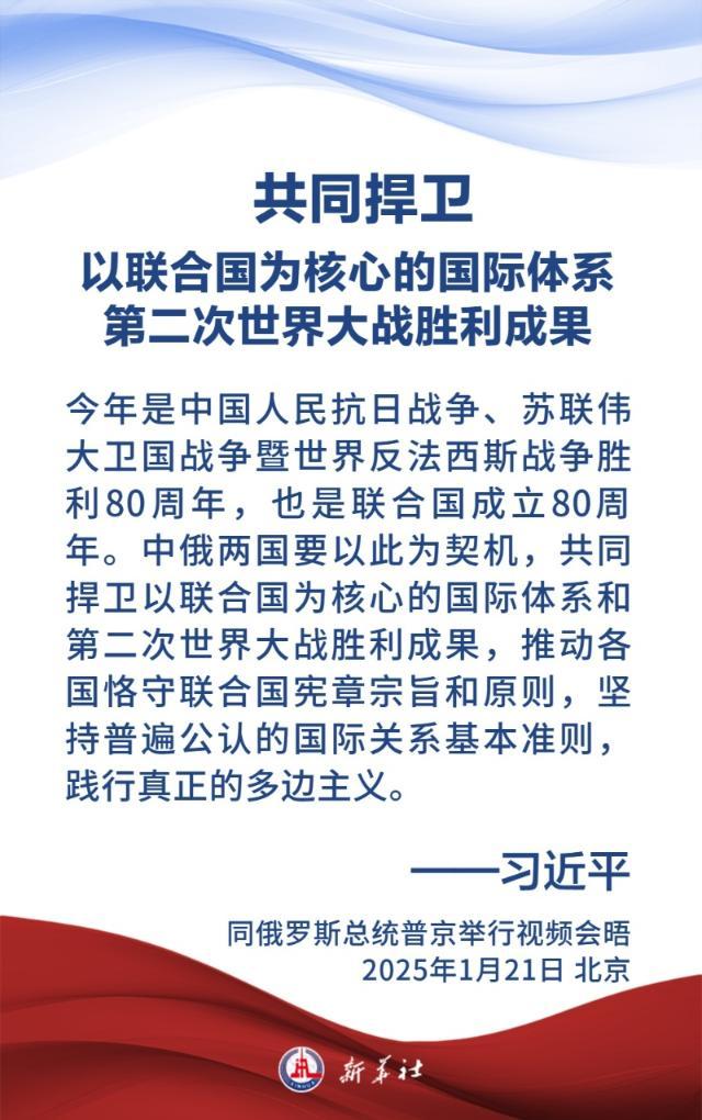 今年是中国人民抗日战争、苏联伟大卫国战争暨世界反法西斯战争胜利80周年。中俄两国作为二战亚洲和欧洲两个主战场,为赢得世界反法西斯战争胜利,挽救各自民族危亡和人类前途命运付出了巨大牺牲,作出了重大历史贡献。习近平主席同普京总统已达成共识,将共同铭记历史,缅怀先烈,弘扬正确二战史观,维护二战胜利成果和战后国际秩序,捍卫国际公平正义。关于中国人民抗日战争和世界反法西斯战争,习近平主席曾这样阐述——