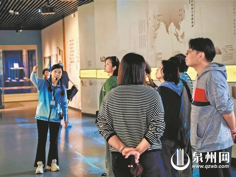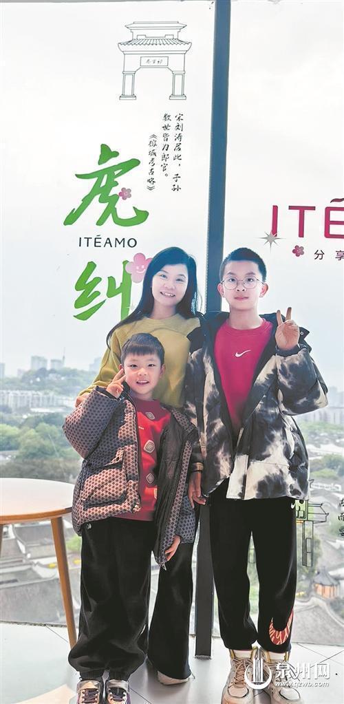 作为两个男孩的母亲,潘珠琴的讲解之路伴随着亲子互动的温暖。她为讲解挑灯备课时,儿子们就当“小听众”,用孩童的视角提出问题;讲解路上,大儿子献唱泉州南音,引得游客点赞连连。