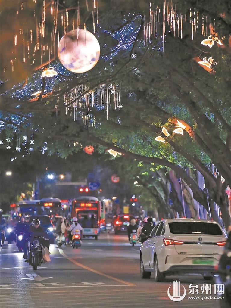 今年以来,市区九一街、打锡街、南俊路、状元街、威远楼等古城核心区域,融合海丝文化符号与现代光影技术,匠心打造多元亮化场景。一入夜,古城便“换装”登场,形态各异的灯光装置点亮街巷地标,闪耀“世遗泉州”的光影图景。