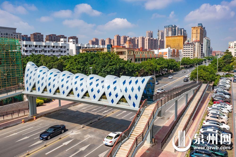 15日,记者在石狮宝岛中路看到,石狮一中北门人行天桥已投入使用。该天桥于近日完工,造型设计含有海浪、船帆等元素,寓意为扬帆起航,乘风破浪。它的投用,优化了局部交通,人车分流使行人和车辆都更加安全。