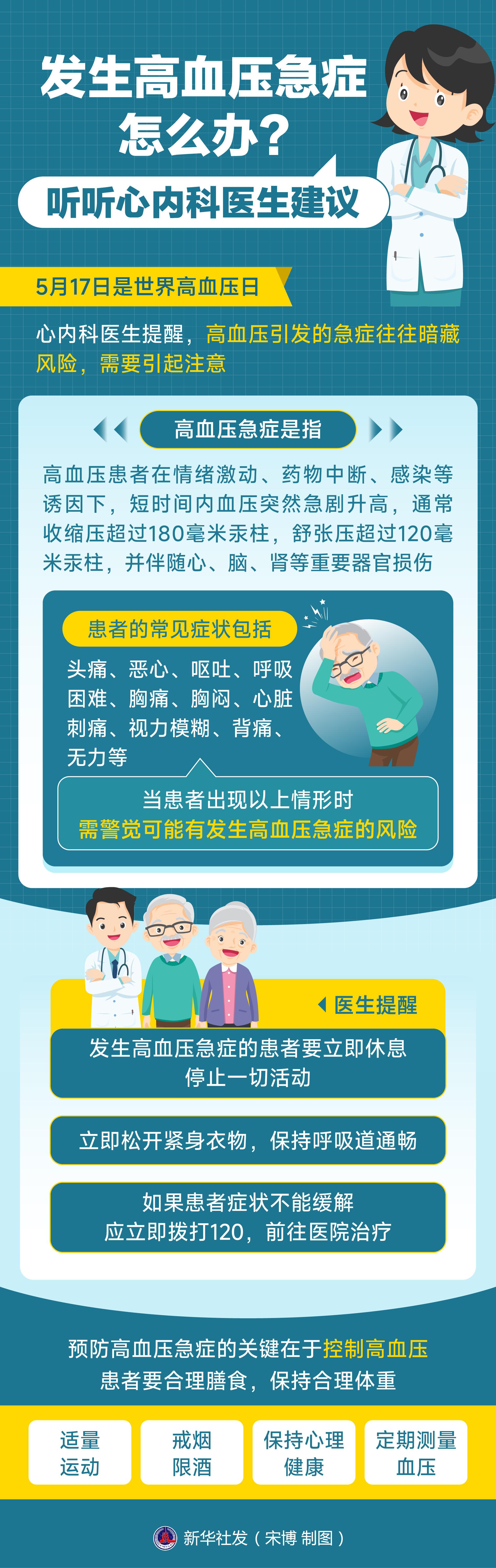 5月17日是世界高血压日。心内科医生提醒,高血压引发的急症往往暗藏风险,需要引起注意。
