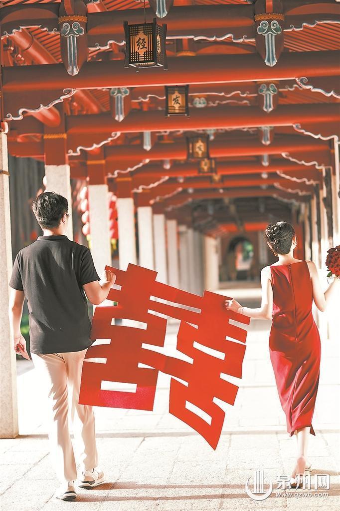 如今,泉州的诸多地标不仅成为游客旅行结婚时不可错过的拍摄背景,也逐渐演变为本地新人领证“盛装打卡”的跟拍地。走进泉州各地婚姻登记处,不少新人头戴白纱、手捧鲜花、高举“小红本”,邀请专业摄影师影像记录,让仪式感在镜头里具象化。