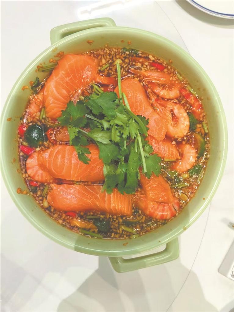 相比闽南“硬菜”,新菜式更受年轻人欢迎,图为捞汁三文鱼。