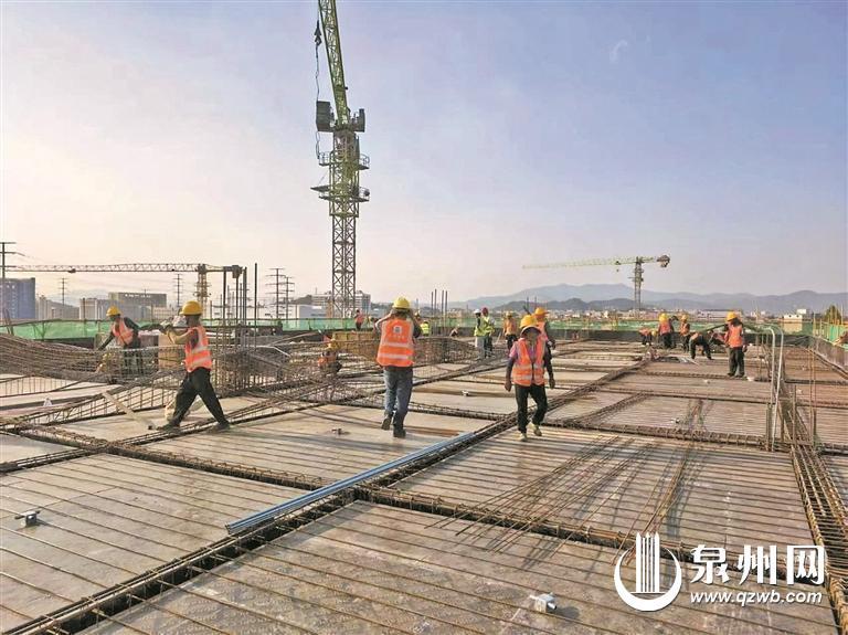 “该楼栋于今年4月进入主体建设,项目通过加大人力物力的投入,加强事前控制,优化施工组织,压茬推进控制工期,历时一个月建设便完成主体结构封顶,比原计划提前了5天。”泉州江南城市建设集团项目负责人吴宇雄介绍,目前,2号楼、6号楼正在进行地下室施工,其余楼栋同步推进基础建设,力争年底实现楼栋全面封顶。