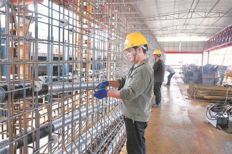 近日,随着最后一片T梁精准落位,政和杨源至永定高速德化段项目的崎垄大桥左幅梁片全部架设完成,标志着该项目A3标段实现全线左幅贯通。在A3标段现场,记者看到洋中2号大桥已高高架起,目前正在进行桥梁右幅的梁片架设。而在不远处的T梁预制场,工人们正在胎膜架上进行T梁的钢筋安装,为后续的梁片架设提供保障。“我们采取标准化施工,通过胎膜架来制作会使梁片钢筋安装更标准,工作效率也更高。目前政永高速德化段全线4112片预制T梁已经完成3923片。”该项目负责人顾吉祥介绍。