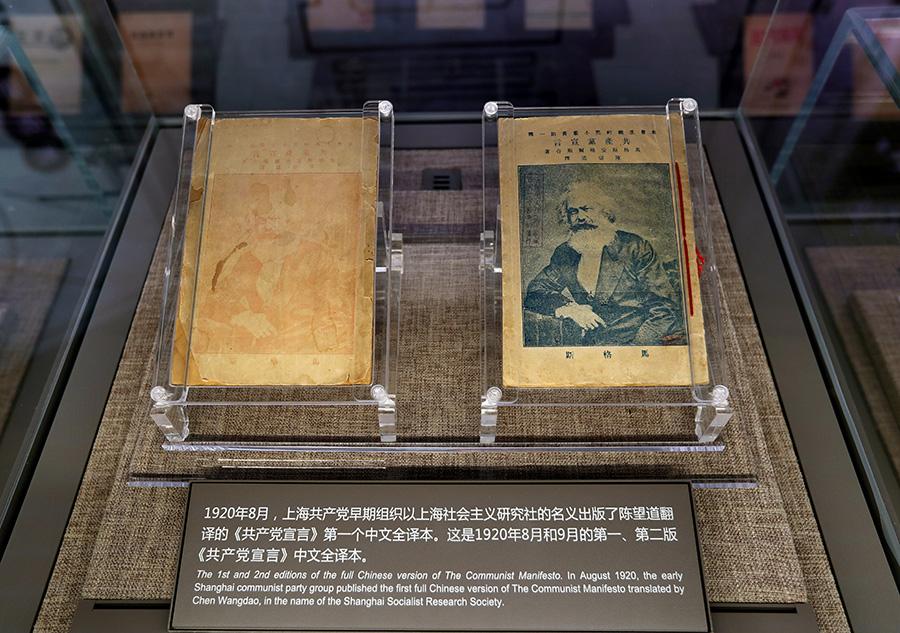 中共一大纪念馆展出的由陈望道翻译的《共产党宣言》第一个中文全译本。新华社记者 刘颖 摄