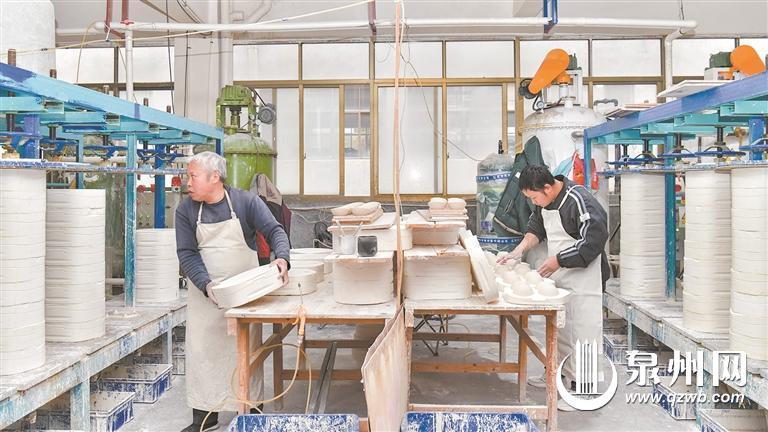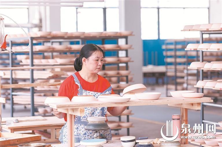 在德化佳诚陶瓷,4条全自动生产线、8条半自动生产线、自动上釉机、自动喷色机等轮流运作,而传统窑炉在改为66米的隧道窑之后,每日烧制量从30立方提高到100多立方,用电量可节省30%以上。