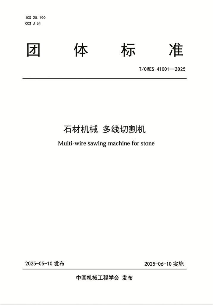 最终,《石材机械 多线切割机》团体标准顺利通过审批,由中国机械工程学会归口并于今年5月10日发布、5月22日启用。该标准涵盖了设备安全、工艺参数、能耗指标等18项内容,对线锯行业的生产和技术要求提出了标准。