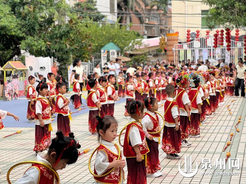 泉州网5月31日讯 (融媒体记者龚翠玲 通讯员黄秀美 文/图)昨日,在泉州东湖中心幼儿园浔埔分园,放眼望去,满眼都是身着传统服饰、头戴簪花的小小蟳埔女和身披混天绫,手持乾坤圈的小哪吒。据了解,为了给孩子们打造一场充满奇幻色彩的欢乐盛宴,泉州东湖中心幼儿园浔埔分园精心筹备了“哪吒闹端午 童趣满六一”为主题的六一儿童节。活动巧妙地将哪吒与传统民俗文化相结合,在弘扬端午传统习俗的同时,又让孩子们度过了一个充满趣味的六一狂欢日。