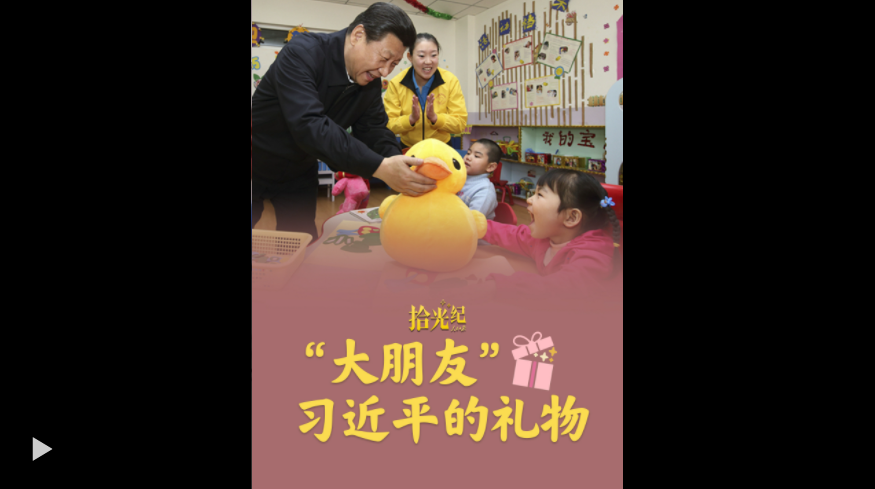 给孩子们送去书包、文具,给福利院儿童带去毛绒玩具......一件件礼物、一声声叮嘱,见证着“大朋友”习近平对小朋友们的温暖关怀。“‘六一’国际儿童节快要到了,祝全国的小朋友们节日快乐!”