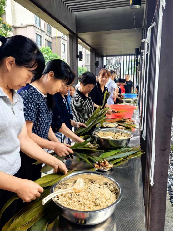 端午当然少不了“包粽子”。文艺演出结束后,居民们围坐在一起,欢声笑语不断。手法娴熟的包粽“能手”迅速包出小巧美观的粽子,新手在热心“老师”指导下也逐渐掌握窍门。糯米与粽叶的清香,混合着大家的欢笑声,编织成一曲幸福的乐章。包好的粽子承载着节日祝福,被居民们带回了家,与家人分享。