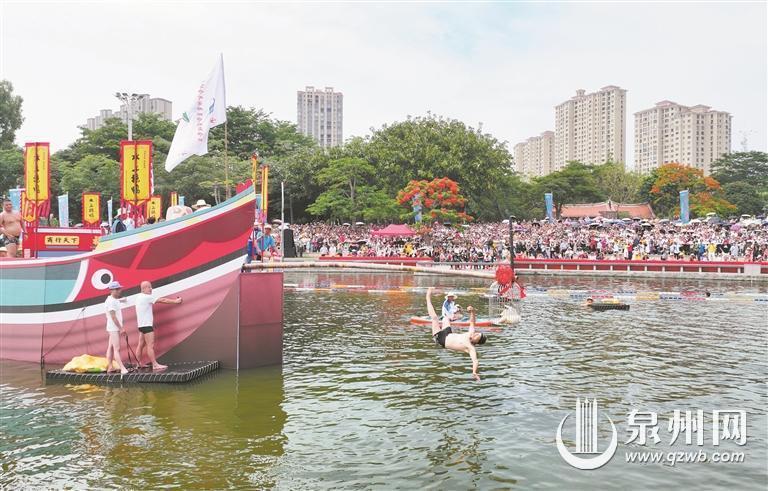 在石狮蚶江古渡头,连续三天的第十九届闽台对渡文化节暨蚶江海上泼水节,吸引众多民众前来观看。闽台对渡文化节不仅引入陆上泼水嘉年华、追光音乐会、灯光秀、无人机表演等新项目,还联动十里长堤、林銮渡等景点,形成“传统狂欢+时尚消费”复合业态,游客市民朋友们参与感十足。