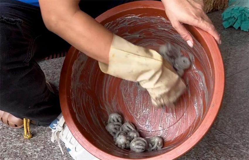 手磨章鱼制作中