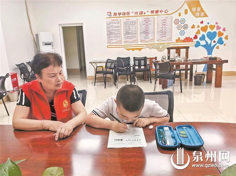 没过多久,孩子们陆续来到“共享奶奶”阵地里,稍作休息后,“共享奶奶”便开始督促孩子们做功课。在奶奶们的陪伴下,学习氛围变得更加温馨有趣。