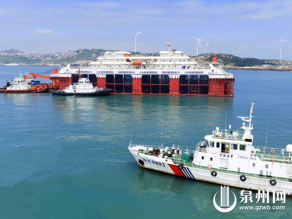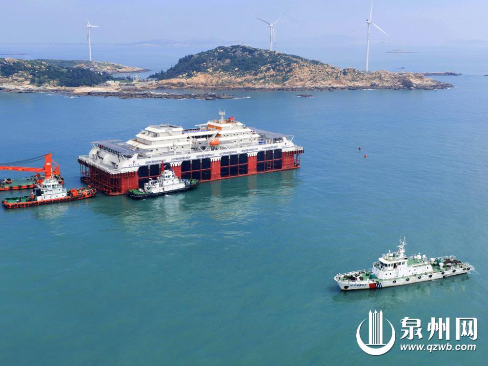 泉州网6月7日讯(通讯员徐建伟 苏德辉 融媒体记者许钹钹 文/图)昨日上午,在泉州海事局“全链条”安全监管与“定制化”服务保障下,泉州海域首座深海养殖旅游平台“闽投惠安1号”成功拖航至惠安县风车岛海域。这座集绿色养殖、智慧旅游于一体的现代化平台顺利“安家”,标志着泉州深远海养殖产业与海洋文旅融合发展迈出关键一步。