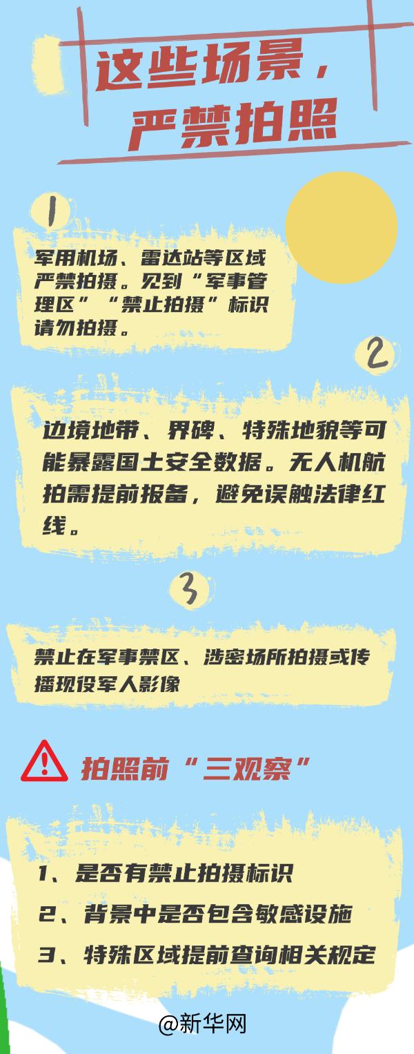 在一些特定场景下自拍行为可能会危害国家安全,所以按下快门之前,多一分谨慎,国家多一分安全。