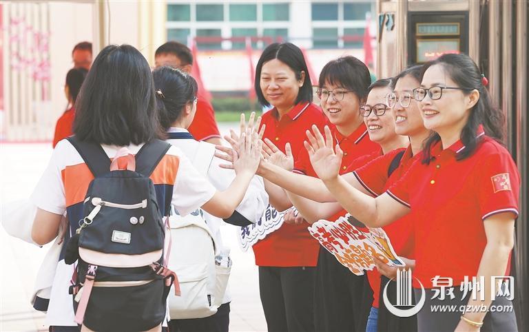 “祝女儿金榜题名,旗开得胜!”7日上午8时,泉州一中(学府校区)考场外,家住市区的苏女士和丈夫早早把女儿送进考场后,一直守在校门口。