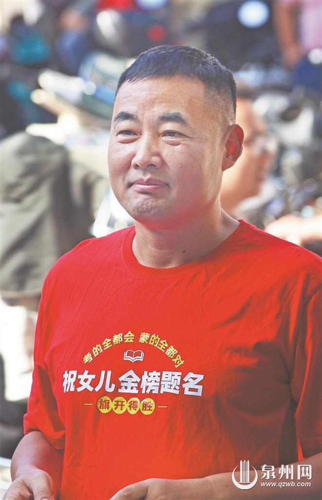 为了祝福女儿考试顺利,苏女士提前在网上定制了一款红色高考祝福T恤。7日凌晨4时,她还到泉州关帝庙为女儿祈福,高考前去了趟永春魁星岩。