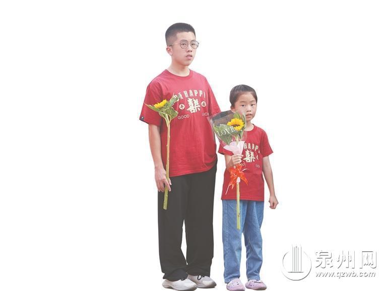 7日早上,泉州一中(学府校区)考场外,9岁的弟弟在妈妈傅女士的陪伴下来送姐姐进考场。弟弟上小学一年级,知道姐姐要迎接人生大考,早早起床送姐姐进考点,并一直守到9时语文正式开考才离开。