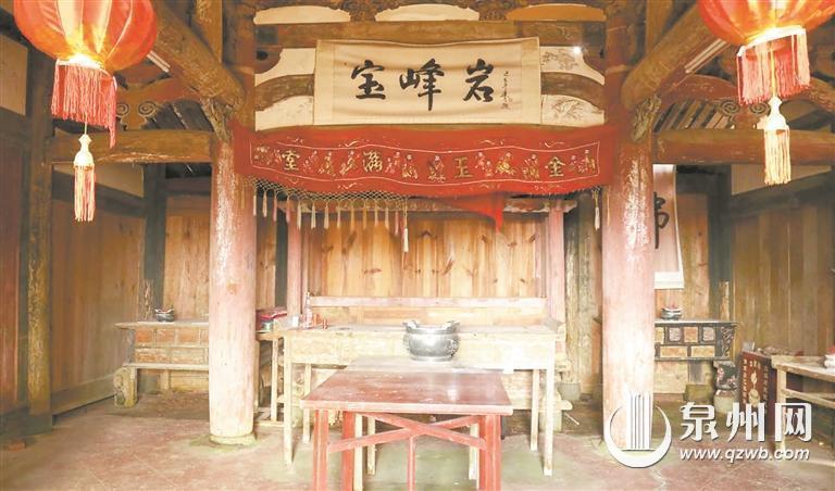 安溪县“四普”调查队队长王淑芳介绍,宝峰岩建筑占地面积468平方米,其布局严格遵循闽南传统“五间张两落大厝带护龙”形制,即五间张两落大厝,左右各带一组护龙。整体建筑由前埕、主座前落、主座回廊、主座后落、左侧护厝、右侧护厝等组成。前埕、前落、后落逐层抬升。